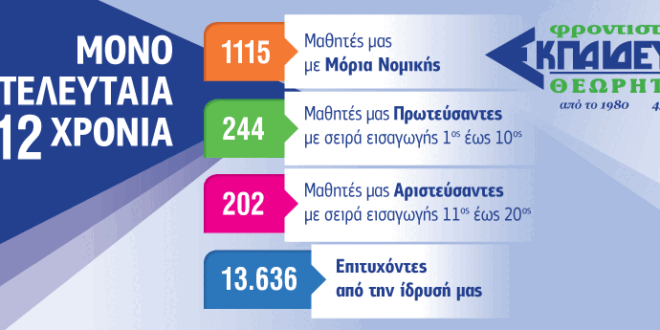 Το μεγαλύτερο θεωρητικό φροντιστήριο στην Ελλάδα (και online), 40 χρόνια τις μεγαλύτερες επιτυχίες!