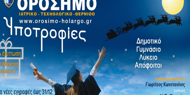 ΦΡΟΝΤΙΣΤΗΡΙΟ ΟΡΟΣΗΜΟ ΧΟΛΑΡΓΟΥ-ΠΑΠΑΓΟΥ : ΕΚΠΤΩΣΗ 50% ΣΕ ΔΙΔΑΚΤΡΑ ΕΤΟΥΣ ΓΙΑ ΕΓΓΡΑΦΕΣ ΩΣ 31/12/2025
