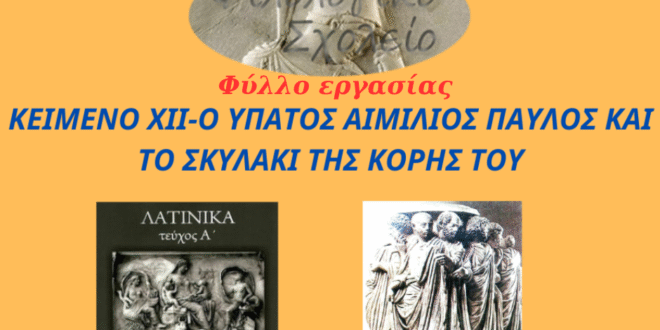 ΦΥΛΛΟ ΕΡΓΑΣΙΑΣ & ΑΠΑΝΤΗΣΕΙΣ : ΚΕΙΜΕΝΟ XII: Ο ΥΠΑΤΟΣ ΑΙΜΙΛΙΟΣ ΠΑΥΛΟΣ ΚΑΙ ΤΟ ΣΚΥΛΑΚΙ ΤΗΣ ΚΟΡΗΣ ΤΟΥ (Ιωάννα Ζώτου)